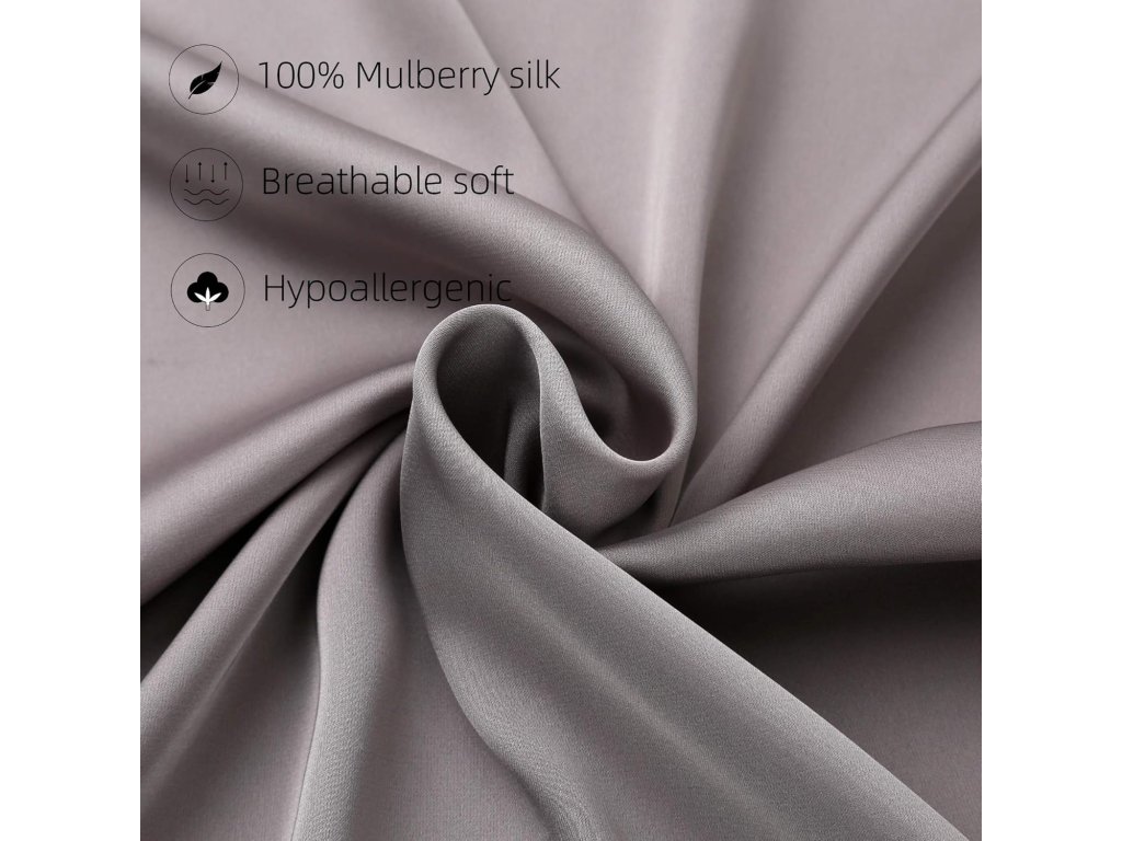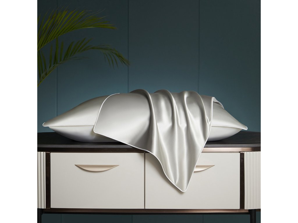Prémiové hedvábí s dlouhými vlákny je extra hladké, lesklé a měkké. Díky vyšší gramáži snižuje vstřebávání krémů do látky, chrání vlasy i pleť a působí proti vzniku jemných linek, akné a otlaků po probuzení. Hedvábí je hypoalergenní, antibakteriální a dermatology doporučováno pro alergiky, astmatiky a osoby s atopickým ekzémem.