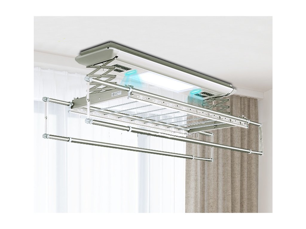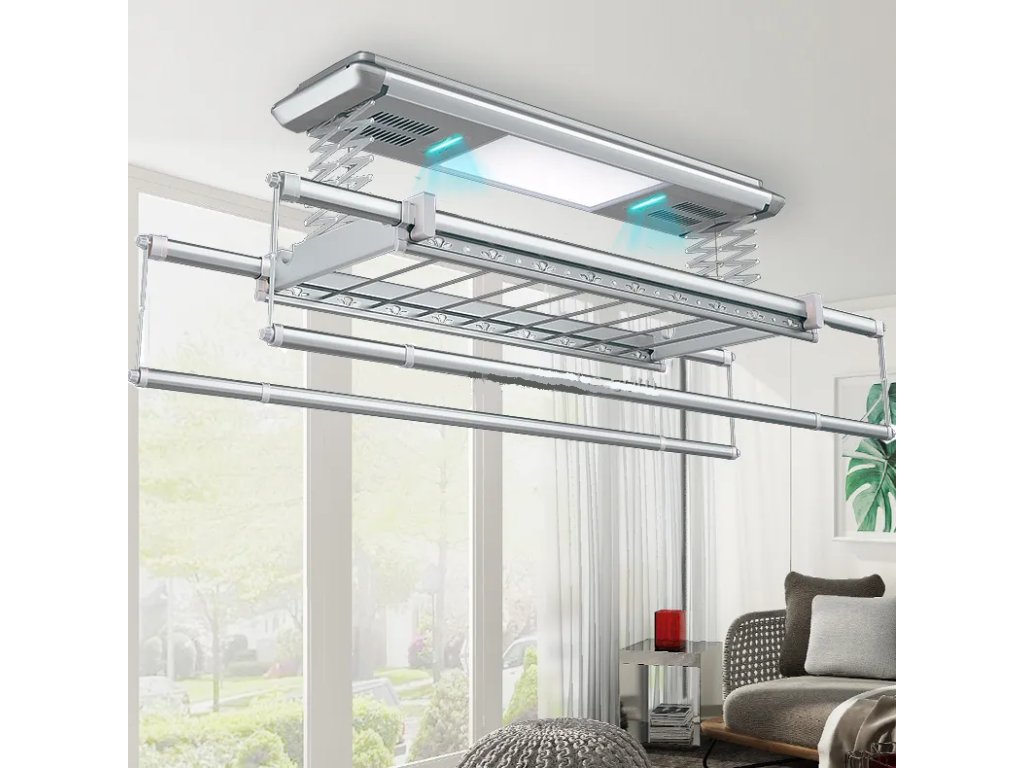 Chytrý stropní sušák, který šetří místo i čas. Elegantně sjede dolů, usuší prádlo pomocí elektrického sušení, posvítí si na práci a na pokyn se zase tiše vrátí nahoru. Jednoduše – moderní pomocník, co se přizpůsobí každému domovu.
